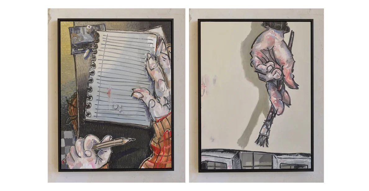 ‘Paper Study #5 and #9’, ‘Under The Cover of a Cloud’ and ‘Still Life’ all contain the hand of the